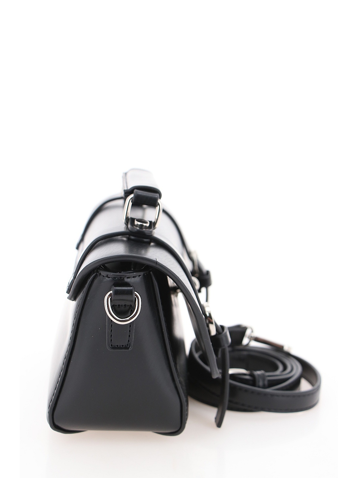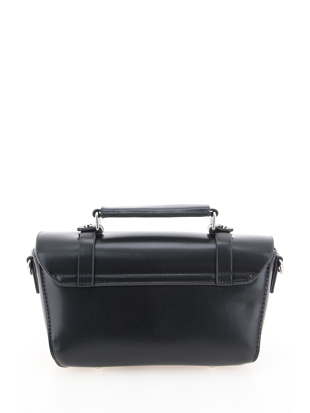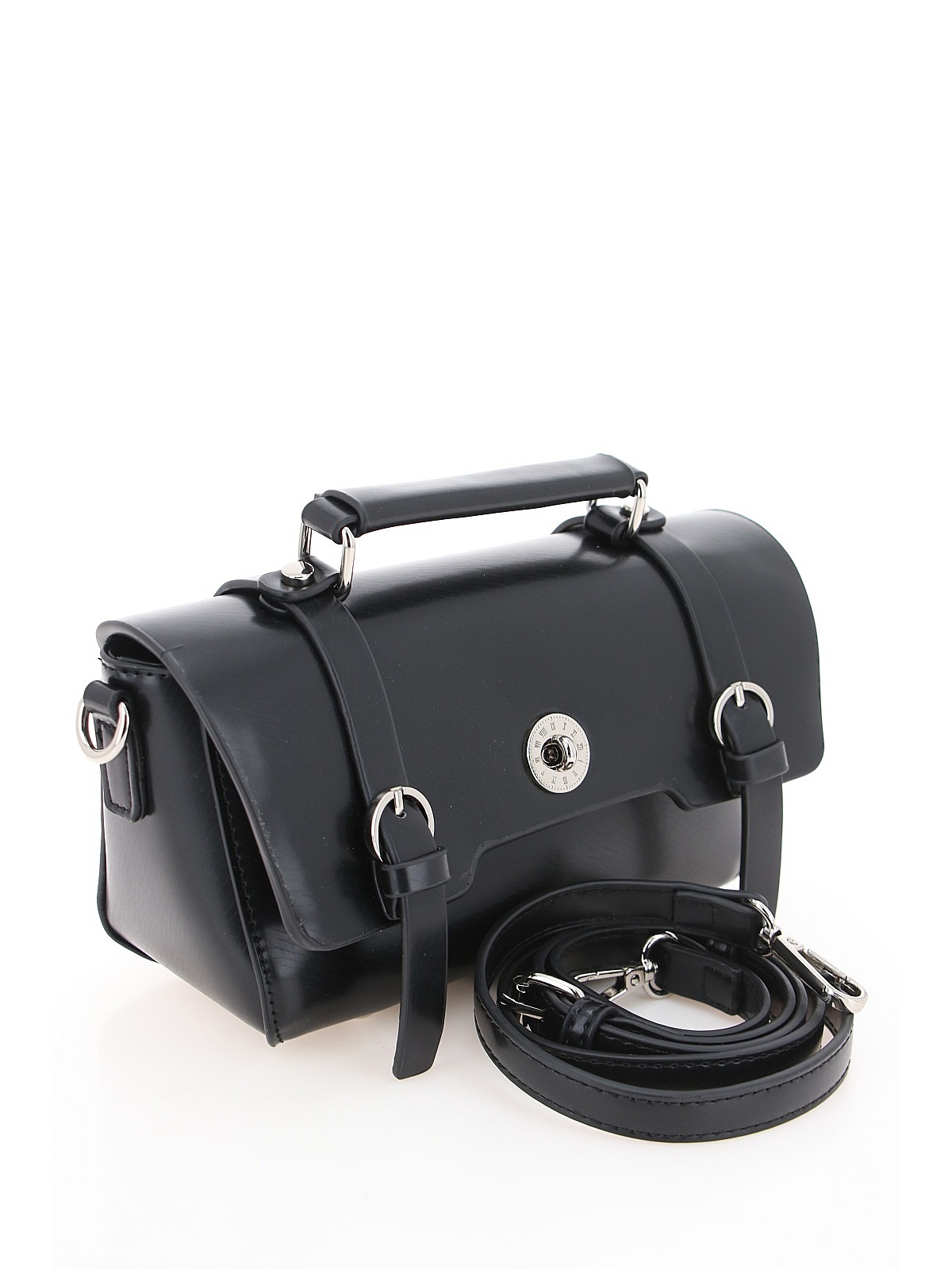 Женская сумка BADEN классического черного цвета — стильный аксессуар для повседневного и делового гардероба. Модель из гладкой искусственной кожи с легким матовым блеском имеет жесткую прямоугольную форму с закругленными краями клапана. Главная особенность дизайна — два вертикальных ремешка на передней панели с металлическими пряжками и круглая заклепка по центру. Небольшая жесткая ручка позволяет носить сумку в руке, а съемный регулируемый плечевой ремень на карабинах добавляет универсальности для ношения на плече или через плечо. Фурнитура серебристого цвета эффектно контрастирует с черной кожей. Эта модель станет стильным дополнением ваших прогулок и повседневных образов. оптом в Хабаровске