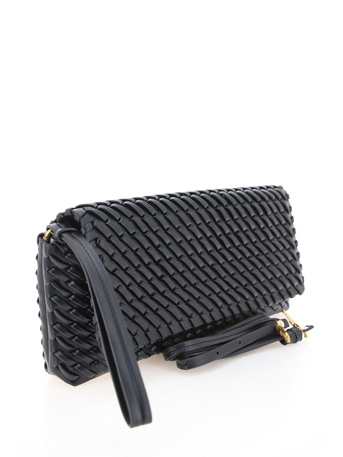 Стильный клатч BADEN черного цвета — элегантный аксессуар для вечерних выходов и повседневных образов. Модель из искусственной кожи с легким матовым блеском имеет прямоугольную форму со скругленными углами. Главная особенность — эффектное диагональное плетение, создающее объемную рельефную поверхность на лицевой части. Короткая петля на запястье позволяет носить его как полноценный клатч, а длинный регулируемый наплечный ремень на карабинах добавляет универсальности. Фурнитура золотистого цвета удачно контрастирует с черным материалом. Эта модель станет стильным дополнением ваших прогулок, встреч с близкими и особых случаев. оптом в Хабаровске